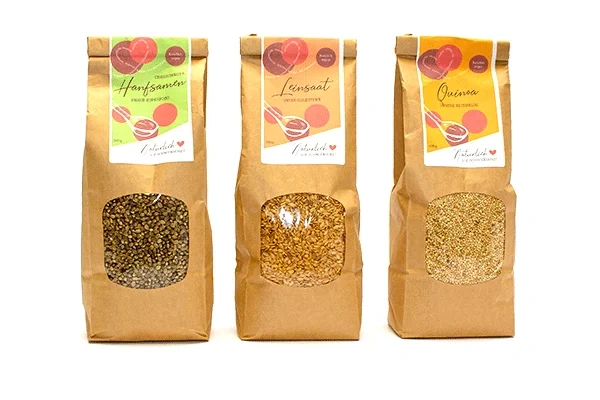 Auf ihren Feldern wachsen wertvolle Saaten, wie regionaler Quinoa, Leinsaat, Buchweizen, Hirse, Sonnenblumen und Hanf. Quasi Superfood aus der „Nachbarschaft“! Aber auch feine Teepflanzen wie marokkanische Minze, Zitronenmelisse, Lavendel und Brennnesseln werden in liebevoller Handarbeit geerntet und verarbeitet. Getreideanbau liefert die Basis für regionale Nudelsorten.