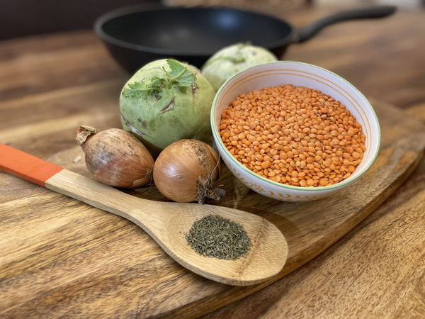 Kohlrabipfanne mit Linsen
