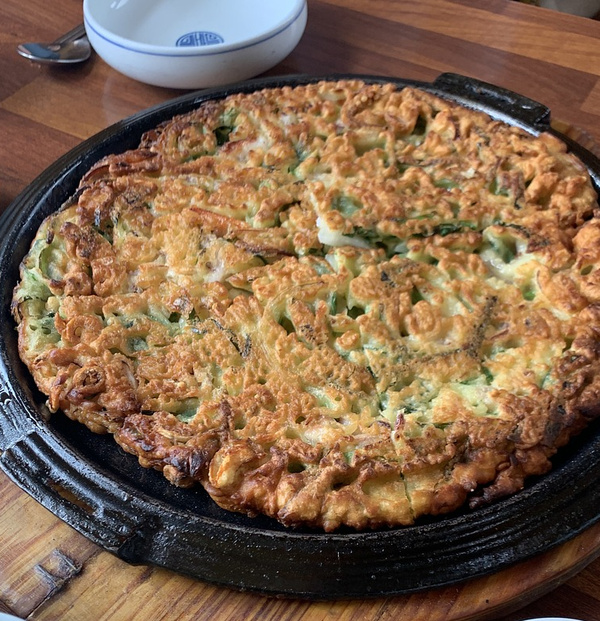 3. Den Porree putzen, waschen, in feine Streifen schneiden und zusammen mit den Sonnenblumenkernen in den Eierkuchenteig geben.