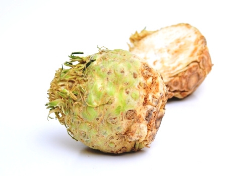1. Kartoffeln schälen und in ca. 2-3 cm dicke Scheiben schneiden. Äpfel waschen, vierteln, entkernen und längs in 0,5 cm dicke Scheiben schneiden. Sellerie schälen, halbieren und in 3 mm dicke Scheiben schneiden. Scheiben je nach Größe halbieren oder vierteln. Kartoffeln und Sellerie in kochendem Wasser 5 Minuten vorgaren. Abgießen.