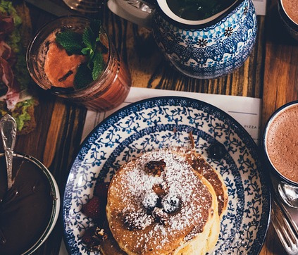Tipp: Ein paar Heidelbeeren zum dekorieren über die fertigen Pfannkuchen streuen.