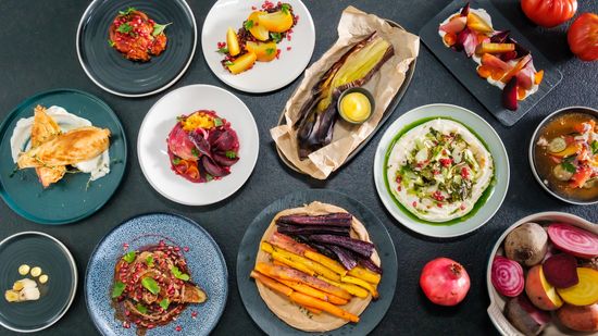 Lassen Sie sich in die orientalische Küche entführen und freuen Sie sich auf Gerichte wie Harissa-Aubergine mit gegrillter Fleischtomate und Minze, Goldrübe im Salzmantel gebacken mit Belugalinsen und geschmorten Spitzkohl mit Misoglasur auf Labneh.
