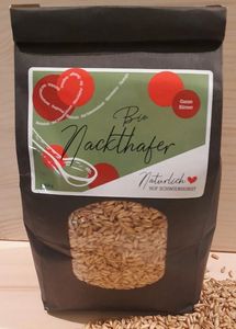 Regional aus Warendorf-Hoetmar: Nackthafer  ist ein sättigender Energielieferant und enthält gesunde Kohlenhydrate, pflanzliche Eiweiße und ungesättigte Fettsäuren. Er ist mild-aromatisch im Geschmack, leicht verdaulich und findet Verwendung in Salaten, Müsli, Bratlingen oder als gesunde Beilage (wie Reis).