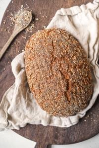 knusprige Kruste und kernig-kompakte Krume, schmeckt mild und leicht röstig, gewälzt in Körnern und Saaten