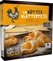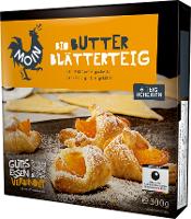 Kreatives Backen leicht gemacht! Sechs backfertige Blätterteigscheiben aus bestem Bio-Weizenmehl und frischer Butter zum Kreieren eigener, köstlicher Backwerke. Natürlich ohne den Zusatz technischer Enzyme. Von MOIN gemacht, vor Ort vollbracht!