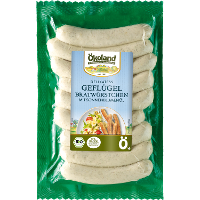 Die Ökoland Geflügel-Bratwürstchen werden aus reinem Bio Puten- und Hähnchenfleisch hergestellt und in Delikatess Qualität angeboten. Dank einer ausgefeilten Rezeptur unter Verwendung von Sonnenblumenöl, geschmackvollen Gewürzen und einem hohen Fleischanteil schmecken sie so ausgezeichnet gut. Hochwertiges Bio-Fleisch bedeutet, dass unsere Bio-Bauern konsequent für eine artgerechte Haltung und gesunde Fütterung der Tiere sorgen.