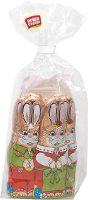 Massive Schokoladen-Osterhasen mit kindgerechtem Motiv in Stanniolpapier verpackt