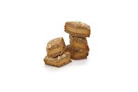Genießerrauten aus Spekulatius mit Mandelblättchen um Schicht aus purem Marzipan mit leichter Honignote; Etikett gedruckt auf Recyclingpappe
