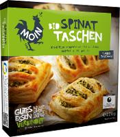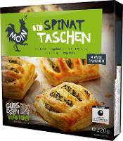 (Reis*, Wasser), WEIZENEIWEIß*, GERSTENMALZ*, Acerolakirschsaftpulver*. Füllung* 35%: Blattspinat* 75%, Zwiebeln*, KÄSE*, WEIZENSTÄRKE*, Wasser, Steinsalz, Sonnenblumenöl*, Gemüsebrühe*