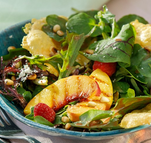 Salat mit Grillobst und Parmesanplätzchen
