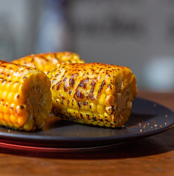 Außerdem eignen sich Maiskolben ausgezeichnet zum Grillen. Man entfernt den Bart, bestreicht den Kolben mit Butter, schließt mit den Blättern den Kolben und legt ihn am Rand auf den Grill!